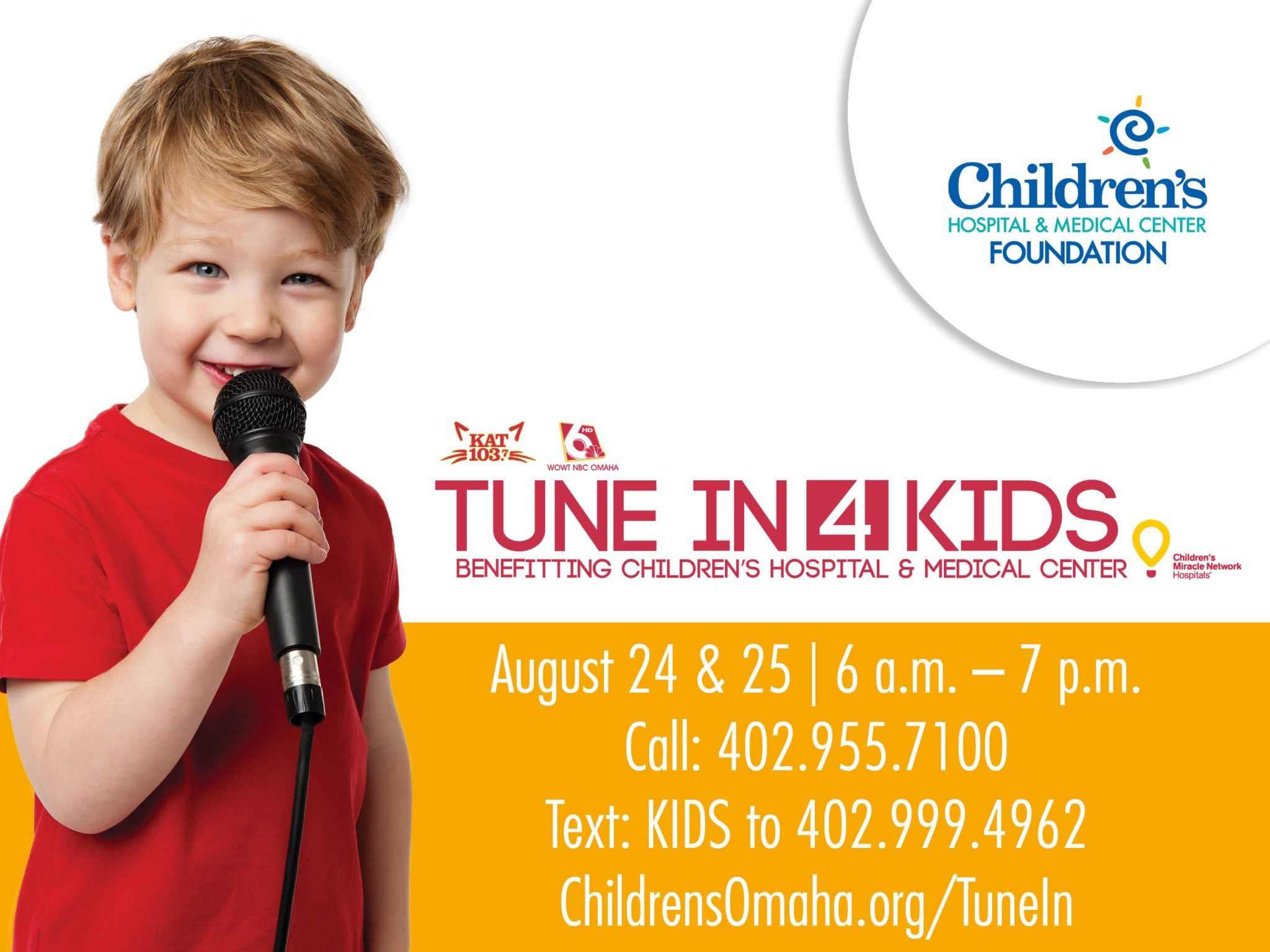 Omaha radio station Kat 103.7 (KXKT-FM) broadcast from the atrium of Children’s Hospital & Medical Center, with generous support from TV station WOWT-6. Together, they aired stories of hope and inspiration, compelling their listeners and viewers to give in support of this important cause.